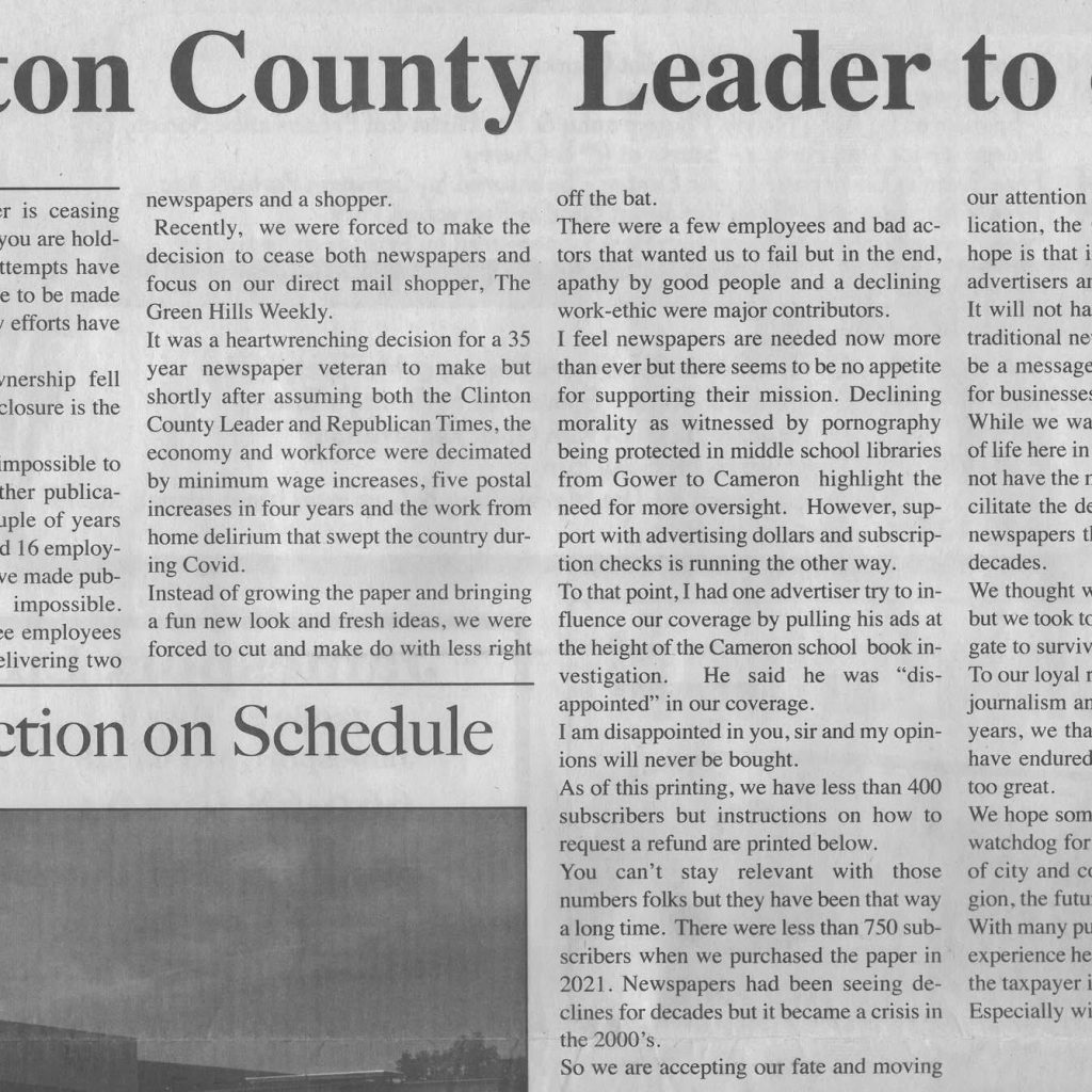 The Cameron Citizen-Observer and the Clinton County Leader both know who threatened to pull advertising dollars if they didn’t make the school district problems “go away.”