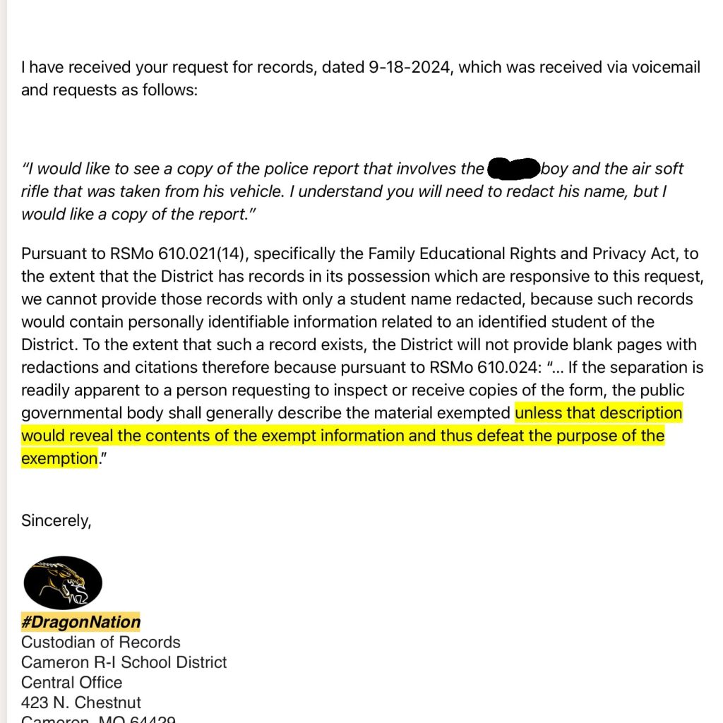 The Cameron R-1 School District’s motto is “Educating and empowering students to reach their full potential.” Their vision statement promises “an exceptional, educational experience.” Is this what reaching their full potential looks like? Is this an exceptional educational experience? Children afraid to speak up? Parents afraid to advocate? Student athletes subjected to unsafe conditions and verbal abuse?